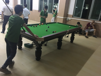 最近公司在我們宿舍樓一樓新建了一間娛樂休閑活動室,這個娛樂休閑活動室內(nèi)有臺球、乒乓球、棋牌室等休閑活動項目,可以提供給公司員工在閑暇時間進行各種娛樂活動,從而增進公司員工跟員工之間的友情。