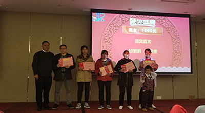 一等獎(jiǎng)10名,每人1600;二等獎(jiǎng)20名,每人800;三等獎(jiǎng)30名,每人400;沒中獎(jiǎng)的是其他員工都有安慰獎(jiǎng),每人100.我們還讓公司員工上臺(tái)進(jìn)行了各種游戲活動(dòng),我們晚宴由晚上19點(diǎn)開始到21點(diǎn)半左右結(jié)束;我們每個(gè)員工心滿意足的走出了宴會(huì)廳。