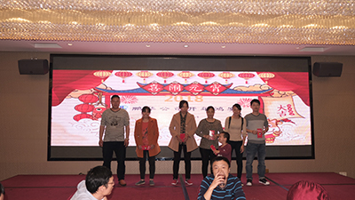 在晚宴開始前由我們公司兩們主持人開場,在由我們公司總經(jīng)理邱總進行晚宴演講:之后我們就正式開始晚宴,在晚宴期間我們公司為我們公司的優(yōu)秀員工、全勤員工、五年忠誠員工、十年忠誠員工進行了頒獎典禮;中間我們還進行了抽獎活動,我們獎項分別:特等獎2名,每人3500;一等獎8名,每人1200;二等獎20名,每人800;三等獎30名,每人300;沒中獎的是其他員工都有安慰獎,每人100.我們還讓公司員工上臺進行了各種游戲活動,我們晚宴由晚上17點開始到21點半左右結(jié)束;我們每個員工心滿意足的走出了宴會廳。
