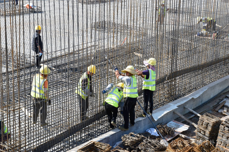 陽(yáng)光下,鋪設(shè)綁扎的鋼筋網(wǎng)展現(xiàn)出利落的線條,穩(wěn)穩(wěn)矗立,預(yù)示著未來(lái)建筑的堅(jiān)固與牢靠。